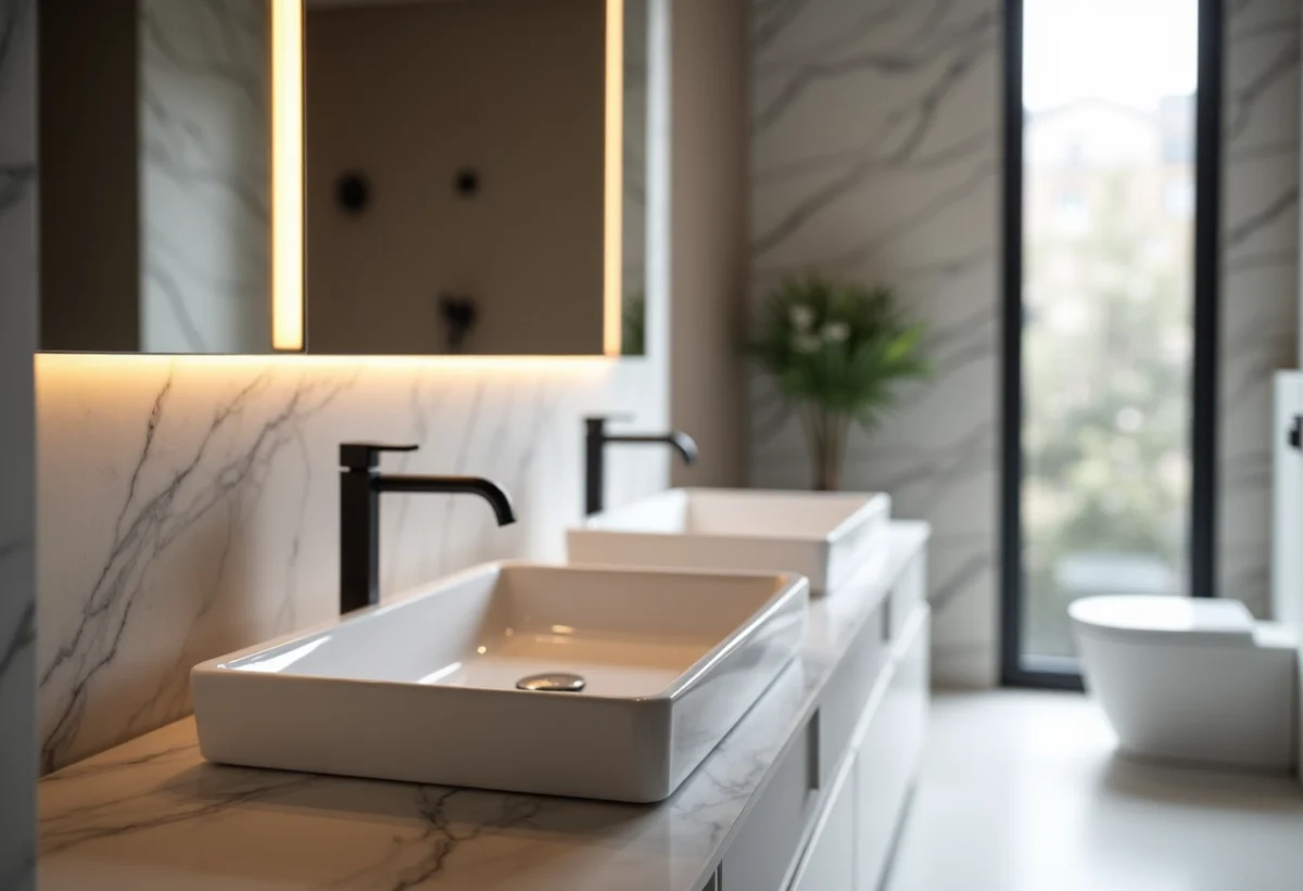 - Robinetterie contemporaine : lignes épurées et minimalistes.