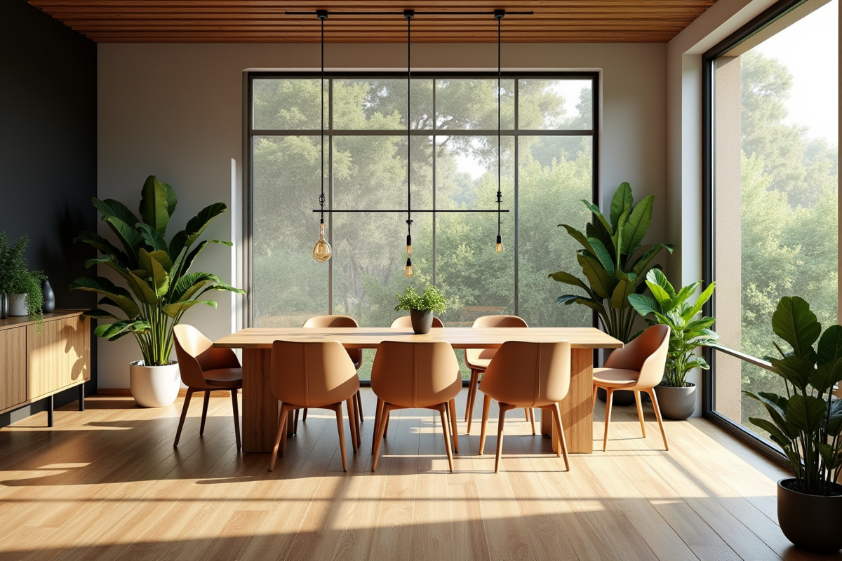 La lumière naturelle reste un allié précieux. Orientez la table près d’une fenêtre pour profiter pleinement du jour, tout en gardant une vue agréable depuis chaque place. Pour les amateurs de feng shui, placer la table de façon à apercevoir la porte tout en gardant l’espace dégagé derrière soi accentue le sentiment de confort et de bien-être.