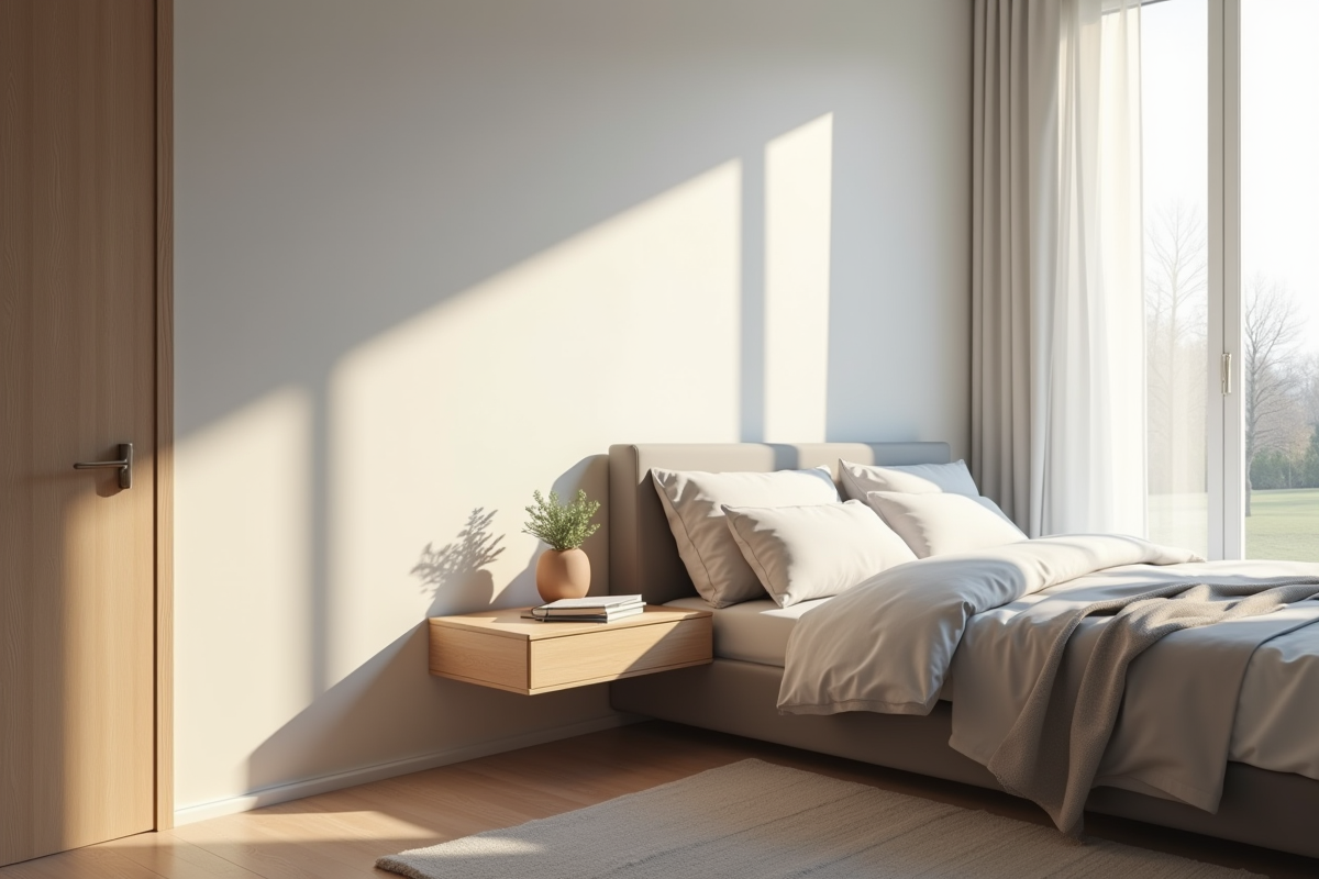 Dans un studio ou une petite pièce, chaque centimètre est précieux. La table de chevet suspendue coche toutes les cases : elle rationalise l’espace, allège la déco et donne l’impression d’un volume agrandi, même lorsque chaque recoin compte.